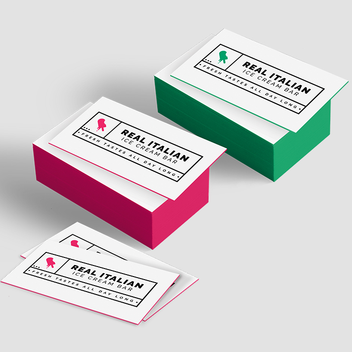 You’ll have an edge over the competition with these painted edge business cards! These business cards are an impressive 32pt (slightly thicker than a credit card), with plenty of room on the edge for impactful color accents, making your cards stand out. Create an impressive and bold statement with our wide selection of vivid colors, or classic white.