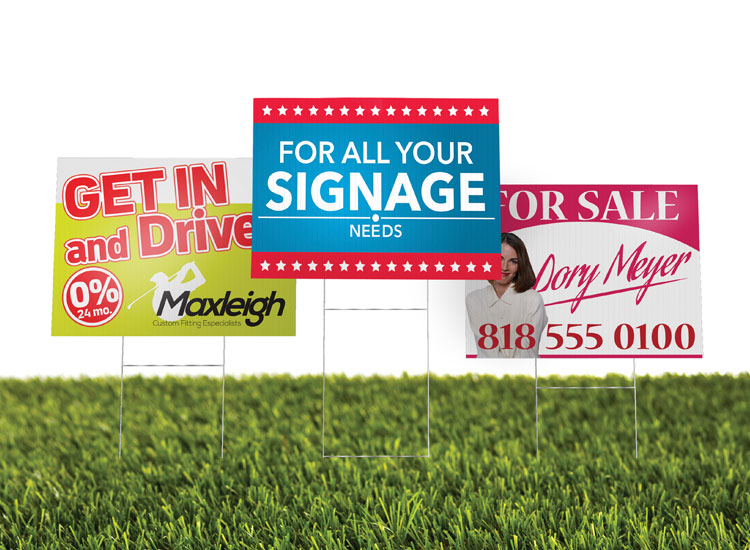 - Rigid Coroplast: typically used for yard, parking, real estate, and election signs, and are waterproof. (If utilizing H-stakes)