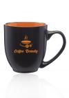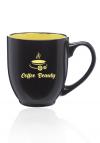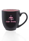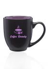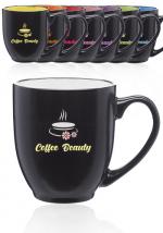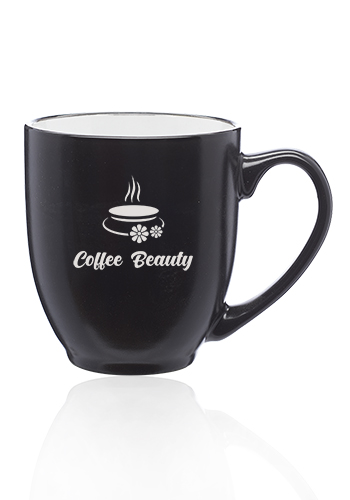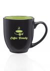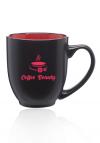 These 16 oz. Bistro Matte Black Our custom mugs with gloss colored interiors are perfect for coffee shops and stores. These coffee mugs are two-toned with a smooth molded ceramic composite. They have a matte black exterior with a bright glossy interior which can come in blue, green, pink, purple, red or yellow. They come with a high curved grip for easy grab-n-go handling. They can also be great to buy as a set to give out as a personal or holiday gift or to add to your own home. Use them for serving coffee or tea. These custom coffee mugs can be printed with logos, slogans, graphic designs or your choice of text.