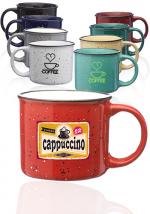 If you’re looking for unique drinkware items for your restaurant, bistro, diner or coffee shop, then you will love our 13 oz. ceramic campfire mugs. Made in the style of tin cups, they come in rich colors that include almond, black, blue, green and, grey, and white, and feature a unique speckled finish that will get the attention of your guests. They also have a slightly flared top for easier drinking and fewer spills. These custom ceramic camper mugs also have a c-shaped handle for an easy grip. You can get our campfire mugs custom printed or laser engraved with not just logos, but also slogans, graphic designs or your choice of text. Order today to take advantage of our Guarantee Low Bulk Wholesale prices.